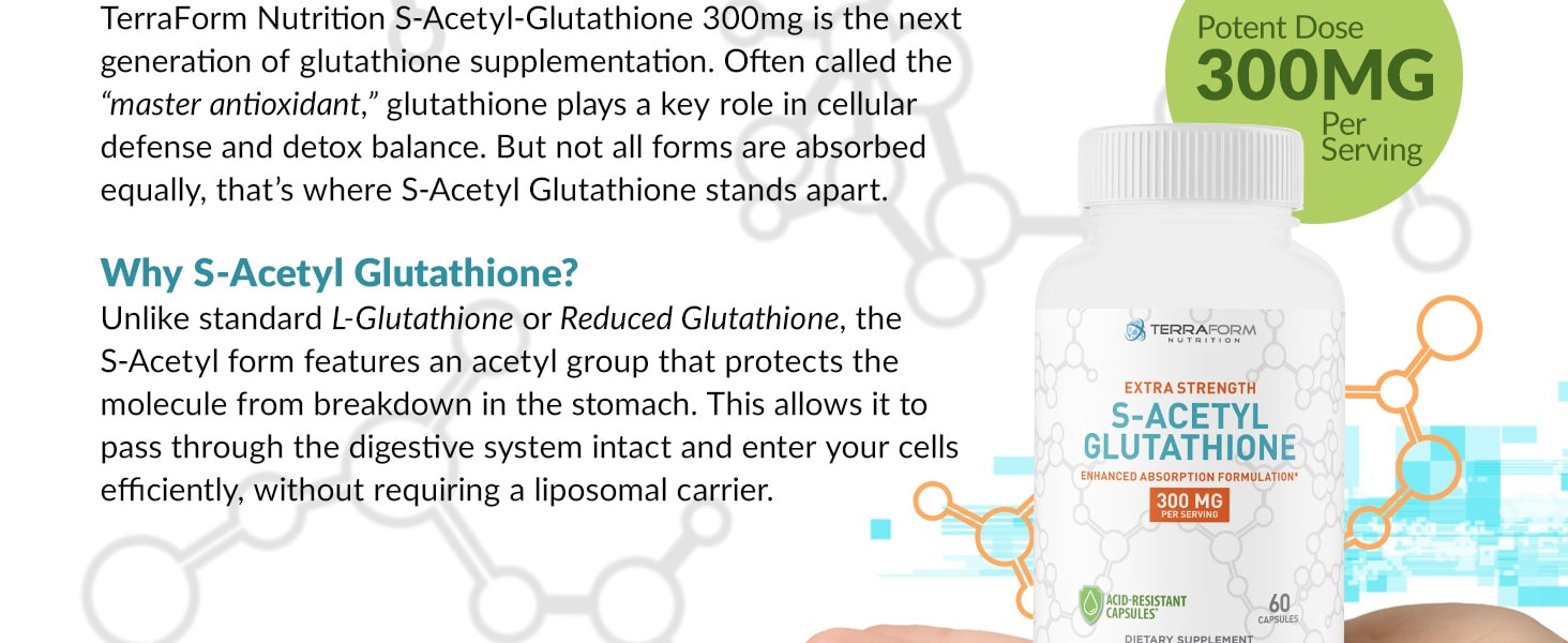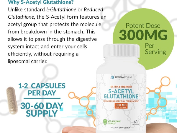 ✔ 300mg of S-Acetyl L-Glutathione per capsule