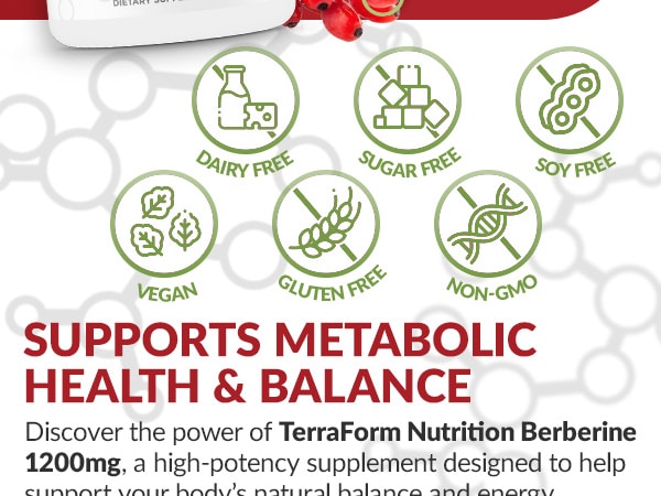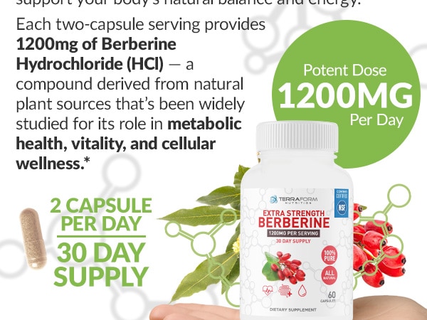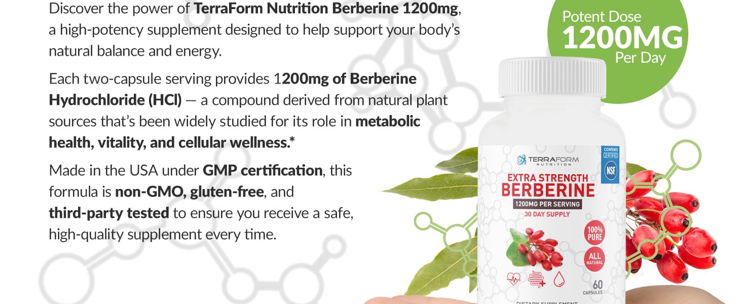 Discover the power of TerraForm Nutrition Berberine 1200mg, a high-potency supplement designed to help support your body’s natural balance and energy.