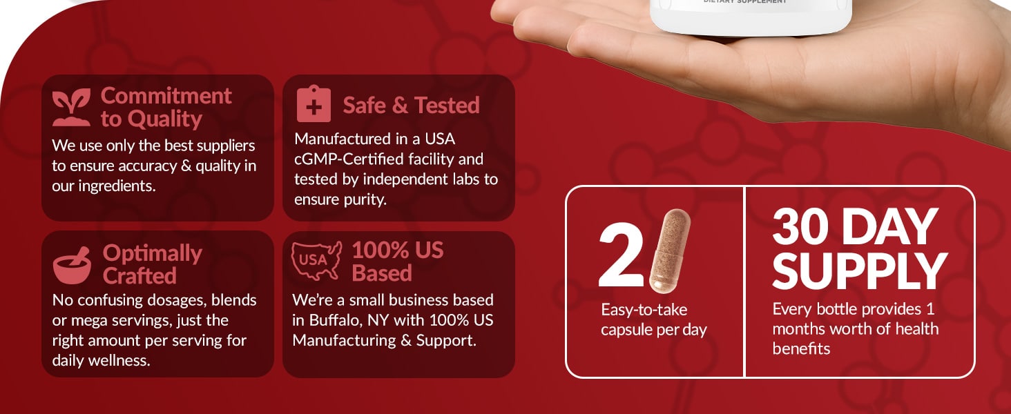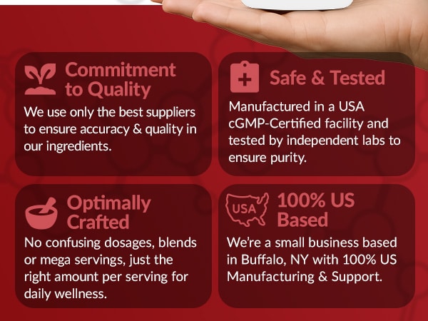Made in the USA under GMP certification, this formula is non-GMO, gluten-free, and third-party tested to ensure you receive a safe, high-quality supplement every time.